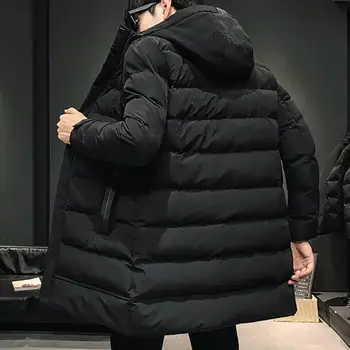 남성용 방풍 중간 길이 면 코트, 겨울 따뜻함, 후드 다운 파카, 야외 눈 보호, 두꺼운 패딩