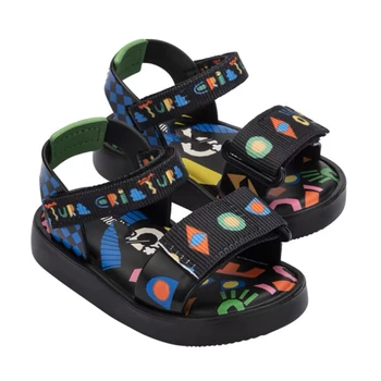 미니 멜리사 어린이 오픈 토 젤리 캐주얼 신발, 소년 소녀 직조 로마 샌들, 프린트 경량 유아 비치 슈즈