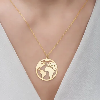 스테인레스 스틸 목걸이, 세계 지도 펜던트 목걸이, 글로브 매력 보호 주얼리, 방랑자 지구 초커, 여행 선물
